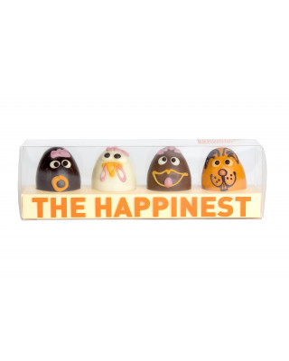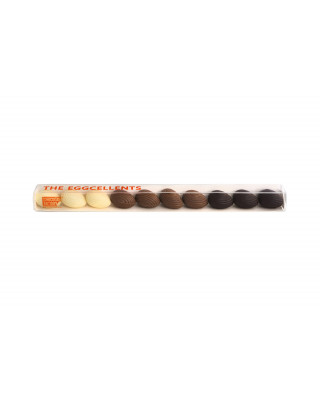 Carro Lista de deseos Comparar The Eggcellents Preu 12,50 € Ous de xocolata blanca, amb llet o negra, farcits de praliné d'avellana .