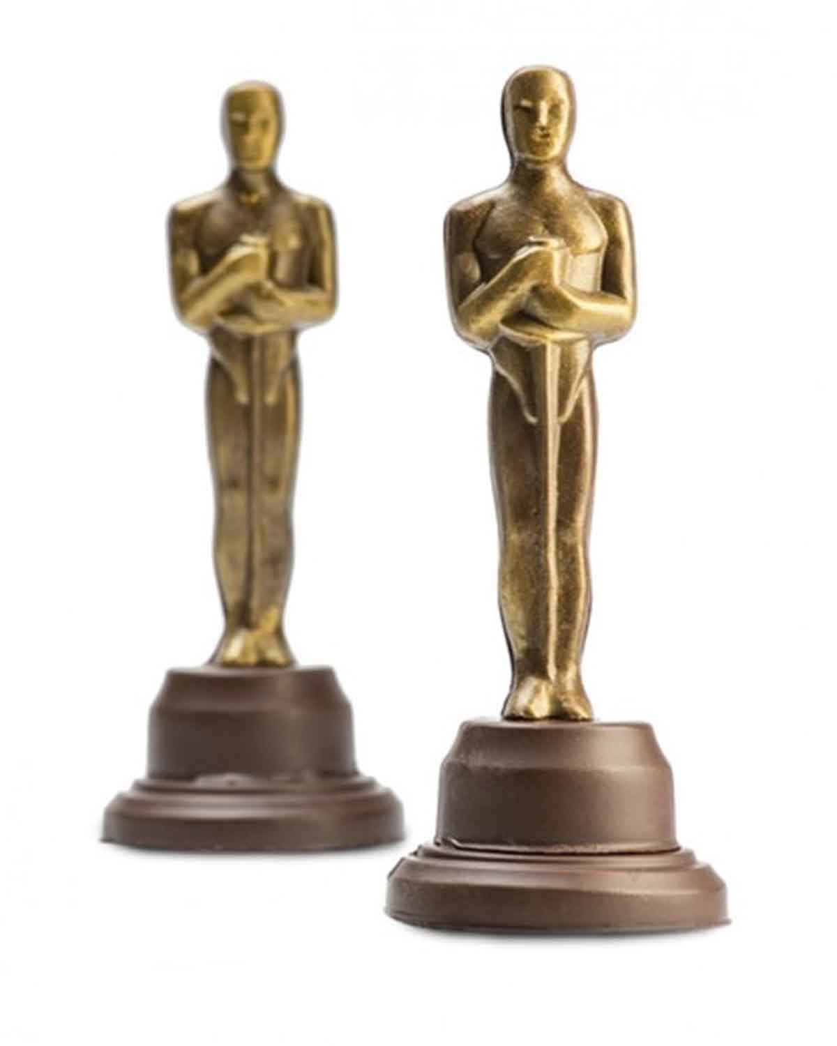 Òscar de xocolata negra massissa, acabat en color daurat.