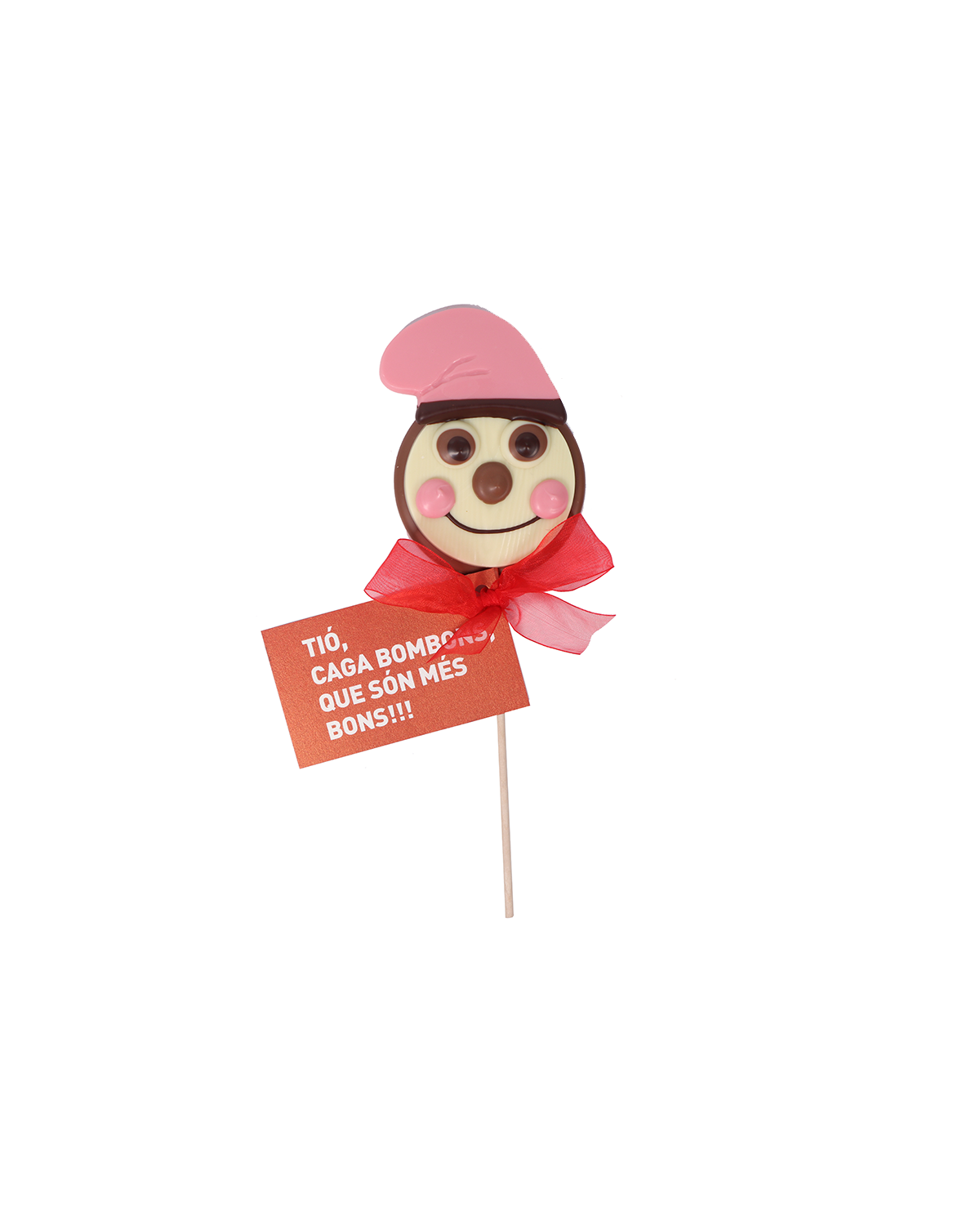 Piruleta tió de Nadal en xocolata negra, xocolata amb llet, xocolata blanca i fresa.