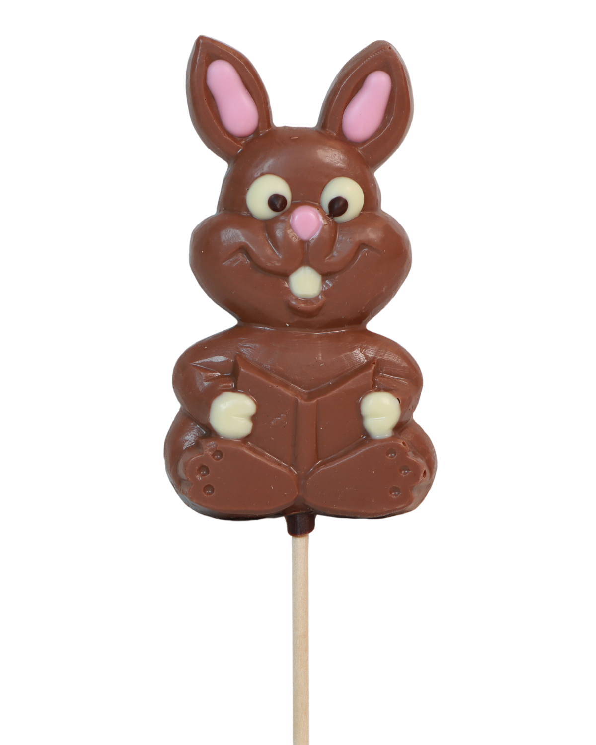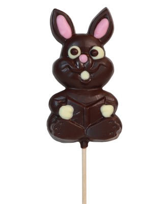 Piruleta de xocolata negra, xocolata amb llet o xocolata blanca en forma de conill de Pasqua