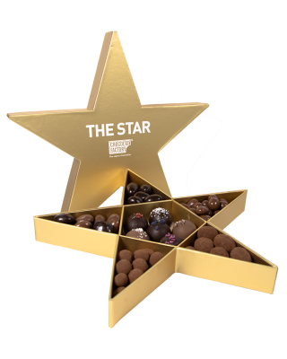 Add to cart Add to Wishlist Add to Compare The Star - gold Price €37.25 Assortment of chocolate bits and truffles , in a star box. Available in gold or black.