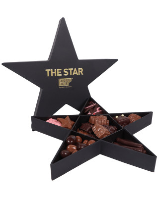 Add to cart Add to Wishlist Add to Compare The Star - black Price €37.25 Assortment of chocolate bits and truffles , in a star box. Available in gold or black.