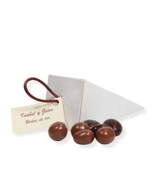 Add to cart Add to Wishlist Add to Compare Box Price €4.95 Cone box for special moments . It's possible chosing the content: toasted corn with milk chocolate, pistachio with dark chocolate, toasted almond...