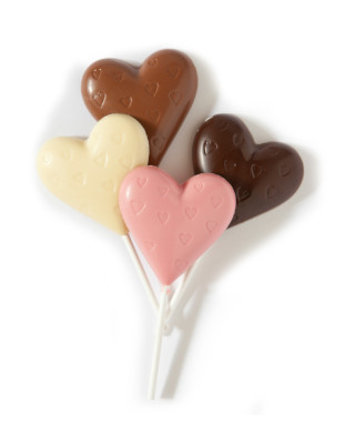 Add to cart Add to Wishlist Add to Compare Heart lollipop Price €3.70 Heart-shaped lollipop of dark, milk, white and strawberry chocolate.