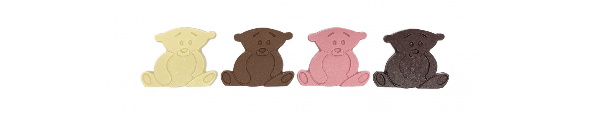 Add to cart Add to Wishlist Add to Compare Teddy bear Price €6.80 Teddy bear-shaped chocolate: dark, milk, white or strawberry chocolate.