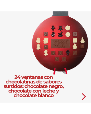 Calendario Bola de Navidad: Figuras de chocolate blanco, con leche o negro, con motivos navideños. Encontrarás un chocolate para cada día!