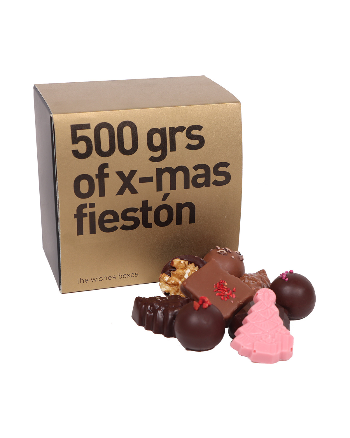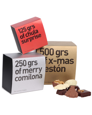 Surtido de bombones de chocolate con leche, negro y blanco con motivos de navidad.