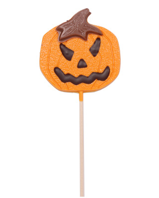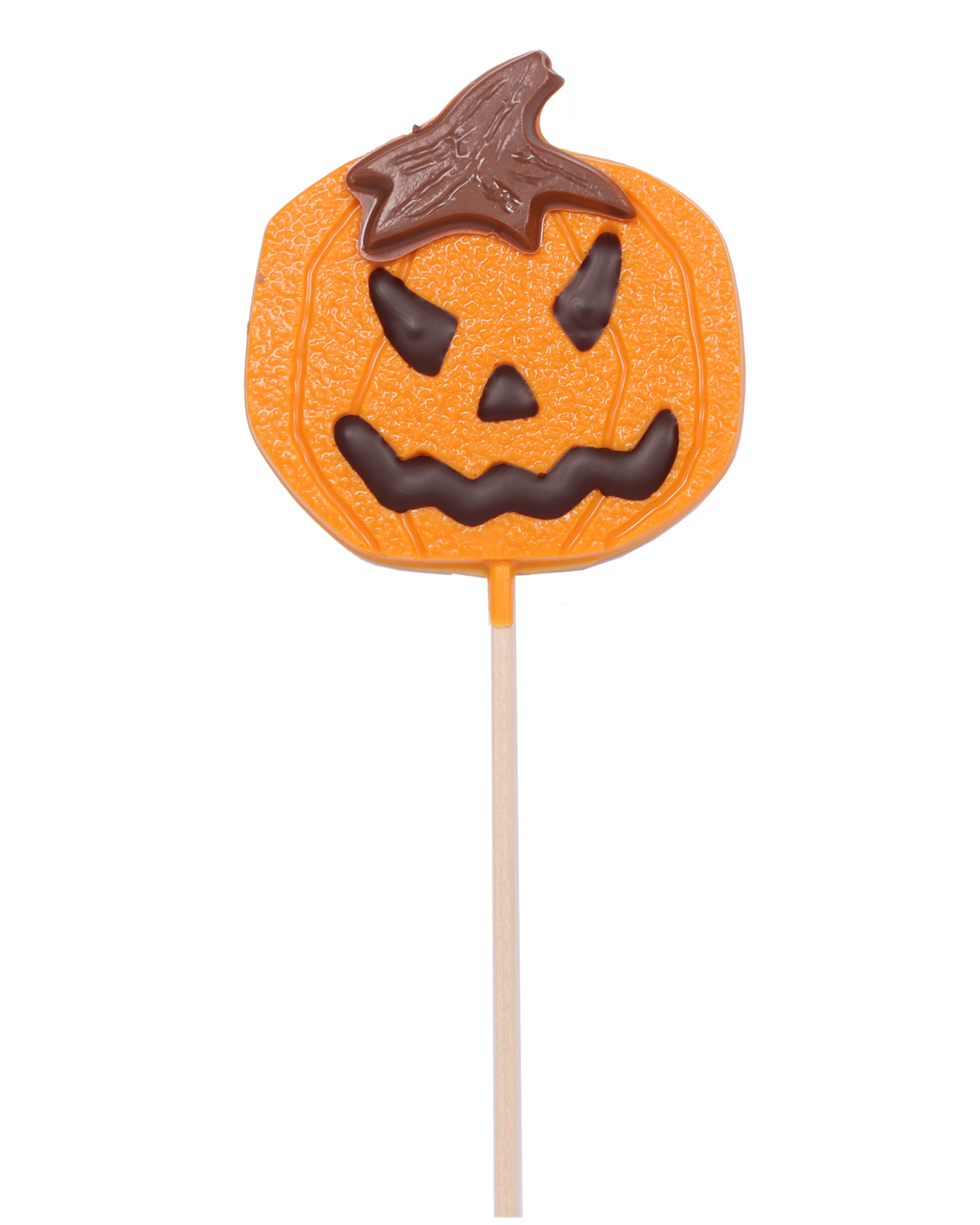 Piruleta en forma de calabaza de chocolate de naranja, para la noche de Halloween. ¡Si te dan calabazas, que sean de chocolate!