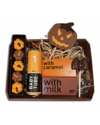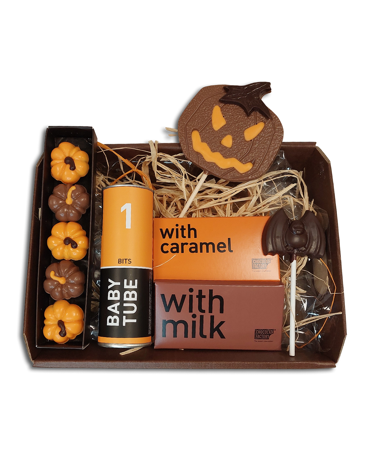 - Bombones calabaza (80 gr): bombones rellenos de praliné de avellanas en forma de calabaza en chocolate con leche y chocolate con sabor naranja.