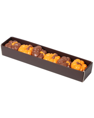 Surtido de bombones con forma de calabaza rellenos de praliné de almendra de chocolate de naranja y chocolate con leche.