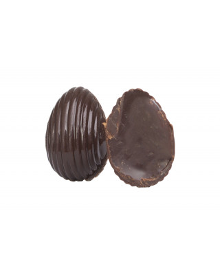 Bombón en forma de huevo de Pascua, de chocolate blanco, con leche o negro al 60% de cacao relleno de praliné de avellanas.