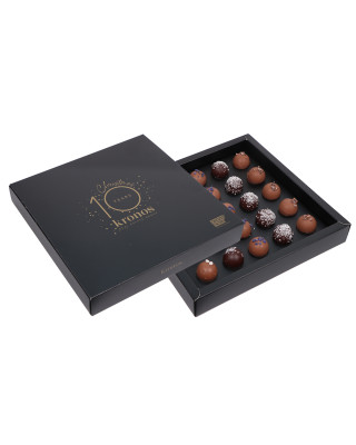 Surtido de trufas de chocolate de diferentes sabores y orígenes de cacao.